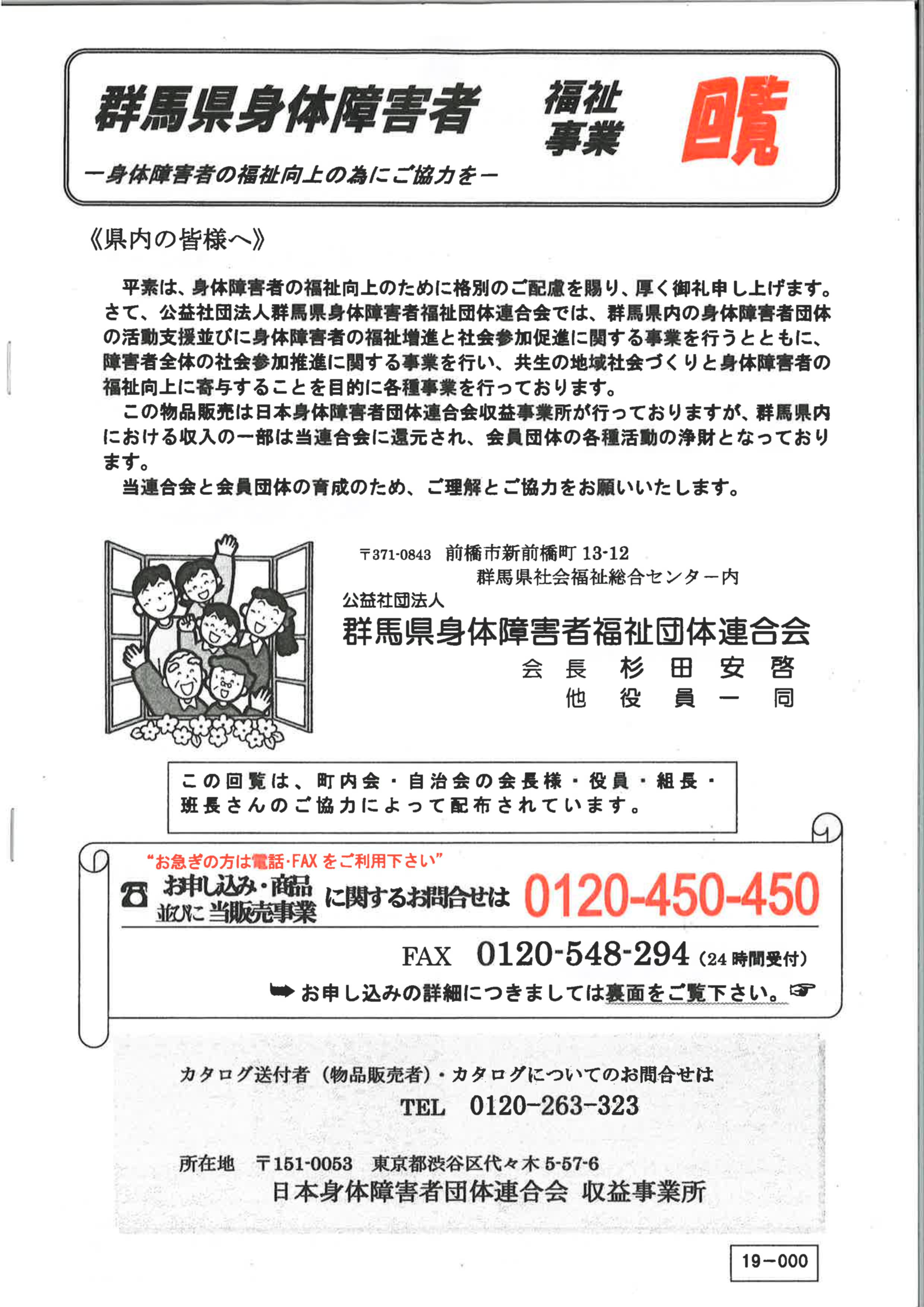 当団体は、障害者の自立と社会参加の促進を目指し活動しております。 「カタログ回覧」で物品を購入していただくと、収益の一部が活動支援金として還付され、大切な自主財源となっております。 この事業は、各町内の区長さん他、多くの皆さまのご協力により実施されております。 皆さまのご理解とご協力をよろしくお願いいたします。